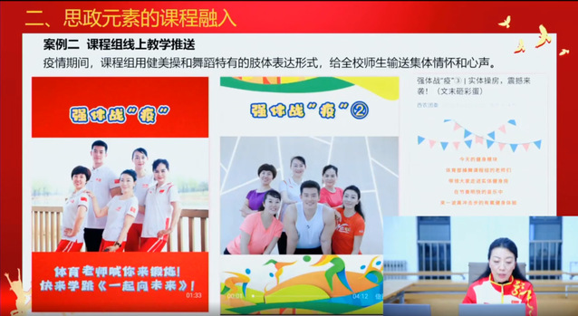 本次研修班主办方特邀两位专家担任主讲。西北农林科技大学体育部副教授高颖晖以“以体育人,以体育心——课程思政教学定位、设计与实施”为主题,从课程内容的建设、思政元素的课堂融入、课程的拓展与成效等几个方面进行了经验分享。