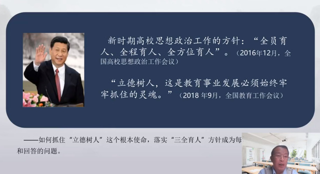10月28、29日晚,学院组织教师参加由中教国培举办的“体育专业课程思政教学设计与实施研修班”线上培训学习。副院长杨刚,教学科研办公室主任,各系部主任、副主任、秘书,校级课程思政项目主持人,省教改项目组成员,教学骨干教师等参加培训。