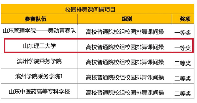 近日,2022年“全民健身舞起来--我的时代正精彩”全国排舞社会运动会(山东站)比赛圆满落下帷幕,我校排舞代表队荣获高校普通院校组校园排舞课间操项目一等奖。