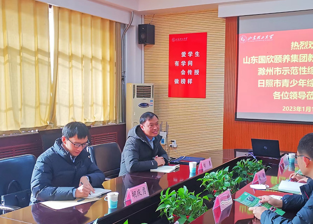 1月16日上午,山东健康集团教育发展有限公司滁州市示范性综合实践基地主任刘勇,日照市莒县青少年综合实践基地主任胡庆勇一行来我院洽谈校企合作事宜。学院党总支副书记赵鹏,副院长杨刚,院团委书记、学工办主任李昌朕,运动系主任高博参加座谈交流。