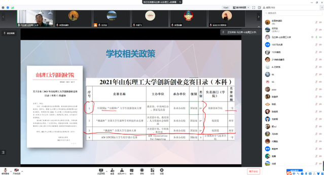 为进一步推动学院创新创业工作,深入做好互联网+创新创业大赛的组织发动工作,1月18日晚,我院举行第九届williamhill中国“互联网+”大学生创新创业大赛第一次培训会,本次培训会邀请学校创新创业学院教育研究中心主任马立修、学院创新创业指导教师庄洪业老师,为参赛选手进行指导和答疑解惑。学院部分教师及全体参赛同学共同参与此次线上培训会。