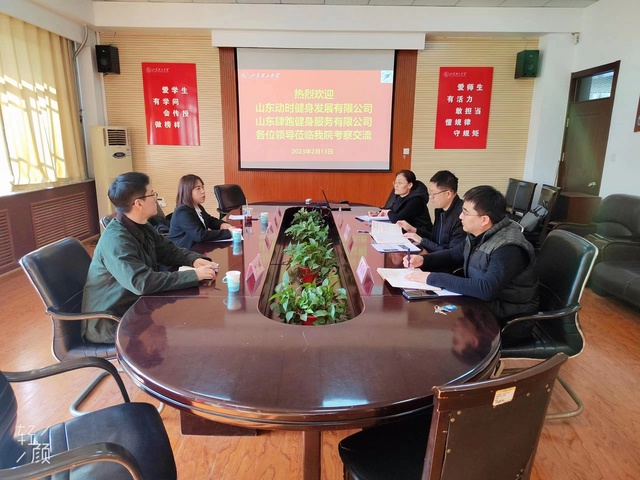 2月13日下午,山东动时健身发展有限公司人力代表、肆跑健身学院院长赵霞,肆跑健身创始人王卓、联合创始人朱圣超一行来我院考察交流。学院党总支副书记赵鹏,院团委书记、学工办主任李昌朕,教学与科研办公室主任韩军梅参加会议。