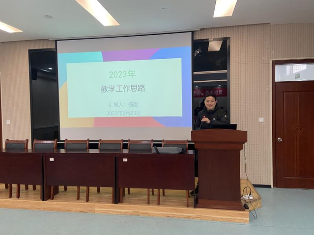 副院长杨刚从2022年工作回顾、2023年工作思路、学院重点工作三方面进行工作部署。他提到,2022年学院超额完成教学相关高质量高发展目标任务(1A5B/1A或2B),是近年来完成最好的一年,2023年着力打造“专业建设省内一流、竞技体育全国有一定影响力的教学型学院”。随后,他梳理了学院本年度的六项教学重点工作:一是专业建设;二是一流课程、教学团队;三是教学联动,从严治考;四是教学改革;五是教师发展;六是学生体质健康测试。