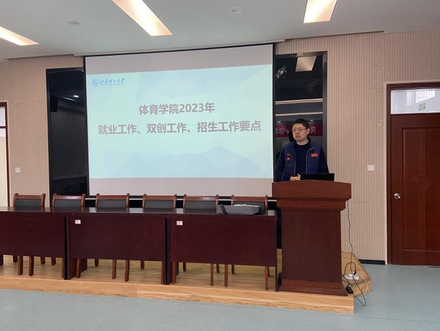 副院长杨刚从2022年工作回顾、2023年工作思路、学院重点工作三方面进行工作部署。他提到,2022年学院超额完成教学相关高质量高发展目标任务(1A5B/1A或2B),是近年来完成最好的一年,2023年着力打造“专业建设省内一流、竞技体育全国有一定影响力的教学型学院”。随后,他梳理了学院本年度的六项教学重点工作:一是专业建设;二是一流课程、教学团队;三是教学联动,从严治考;四是教学改革;五是教师发展;六是学生体质健康测试。