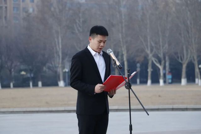 岁序更替,新元肇启。学院青年学生代表崔津诚在国旗下发表演讲,以“不忘初心跟党走,擎旗奋进新征程”为主题,号召作为青年的我们,坚定不移听党话、跟党走,怀抱梦想又脚踏实地,敢想敢为又善作善成,立志做有理想、敢担当、能吃苦、肯奋斗的新时代好青年。