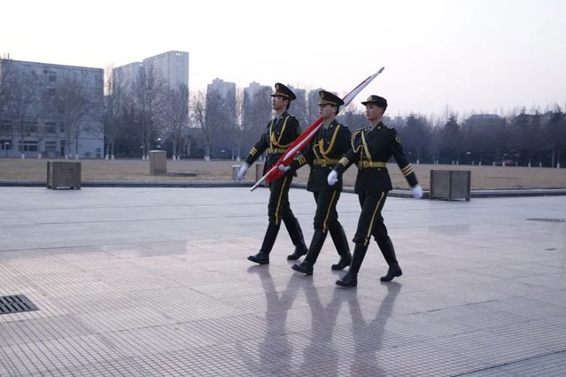 仪式伊始,国旗护卫队迈着铿锵有力的步伐护送国旗入场,伴随着激昂雄壮的《义勇军进行曲》,鲜艳的五星红旗迎着朝阳缓缓升起。全体师生面向国旗高唱国歌,行注目礼,表达对祖国的热爱和美好祝福。