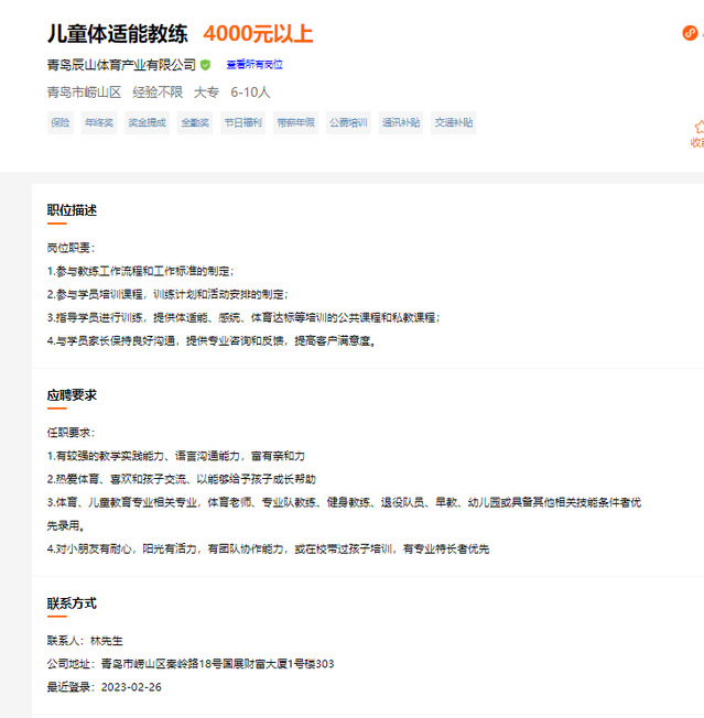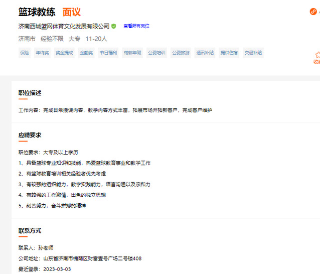 体育招聘信息