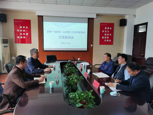 3月23日上午,淄博广电医院院长毕富强、骨科专家高佃华一行2人来我院交流座谈。学院党委书记、院长韩长江,副院长马国栋、杨刚,教学科研办公室主任韩军梅参加座谈会。