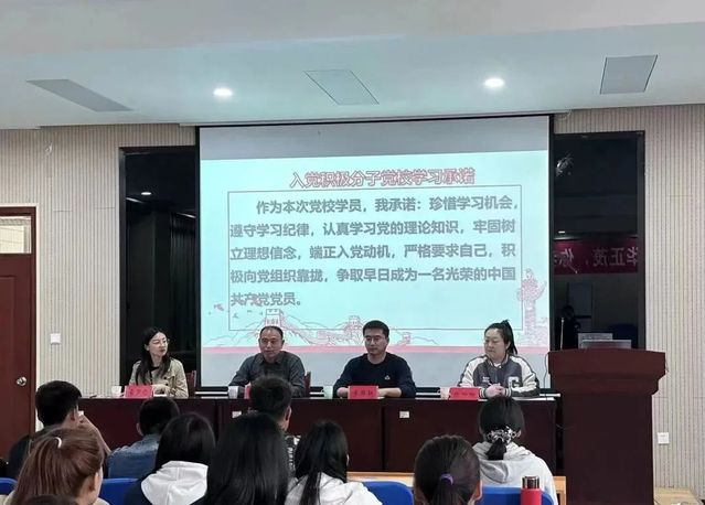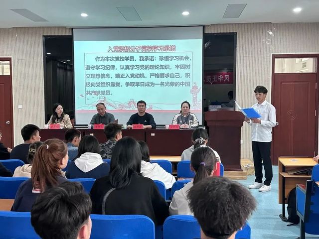 学生党员代表江浩润发言表示,希望全体培训班学员珍惜机会,认真参与党课学习,加强思想认识,坚定理想信念,端正入党动机,强化服务意识,切实提高为师生服务水平。组织上的入党一生一次,思想上的入党一生一世。坚持党和人民的利益高于一切,自觉纠正工作中的缺点和错误,学习上精益求精,为推进学校学院发展做出自己应有的贡献。