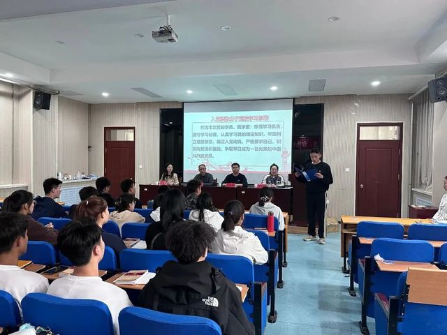 2023年4月13日下午williamhill威廉希尔于2教101会议室举办入党积极分子党课培训班开班仪式,williamhill威廉希尔党委副书记曹绪亮,团委书记、学生工作办公室主任李昌朕,学生党支部书记陈盼盼、索罗丹,及31名入党积极分子参会。此次会议由陈盼盼主持。