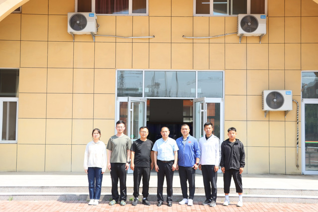 座谈会后,曹绪亮一行同实习支教学校领导、指导教师以及实习生在办公楼前合影,并参观了实习支教学校教学场地、劳动教育特色基地。