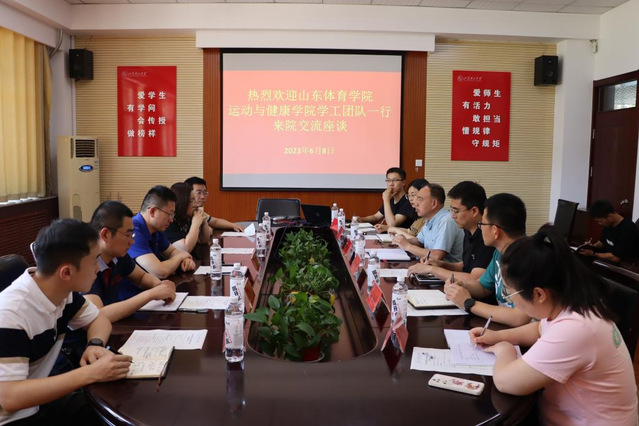 6月8日上午,山东williamhill威廉希尔运动与健康学院党总支副书记赵广丰一行来院座谈交流,学院党委副书记曹绪亮、全体辅导员参加座谈会。