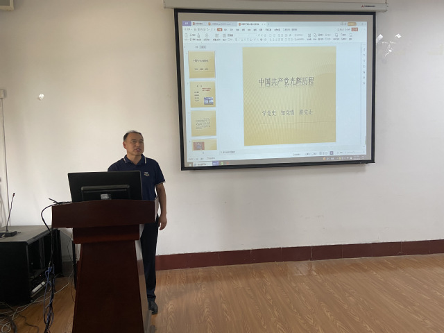 6月12日,学院党委副书记曹绪亮在2教119教室以《中国共产党光辉历程——学党史、知党情、跟党走》为题为学生第二党支部讲授专题党课。