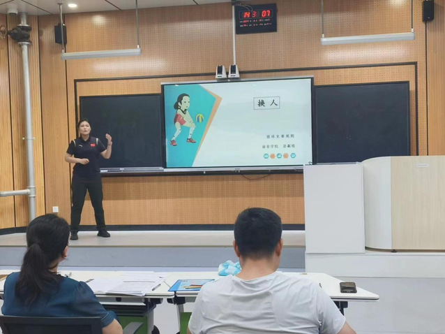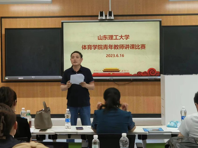接着五位参赛教师抽签决定参赛顺序,然后每人进行了20分钟的课堂展示。赵崇良以奔跑的猎豹和短跑名将苏炳添为例向大家阐述了短跑途中跑的技术原理。孙粼婧的授课内容是排球比赛规则—换人,她用明白清晰的语言将换人的概念、换人的限制和特殊换人等内容呈现给大家。随后是赵亮的健美运动和朱银飞的800米跑,通过他们的教学展示,大家了解了如何制定适合自己的健美运动计划,如何控制运动强度,如何避免重力性休克,以及800米跑的加速跑和途中跑技术原理等内容。最后是崔晨的中国网球红色记忆,他将课程思政元素植入课堂,讲述了网球运动从红色战争时期一直到现在的发展历程。每位老师在课堂展示完毕都进行了5分钟的教学反思,陈述本堂课的优点和不足之处。