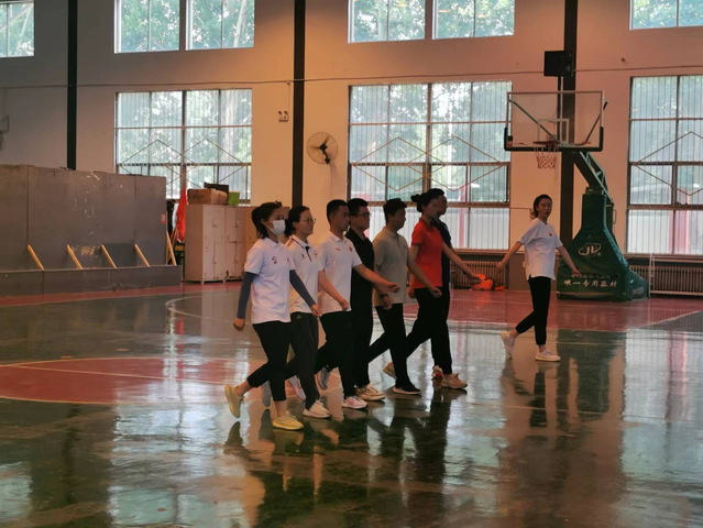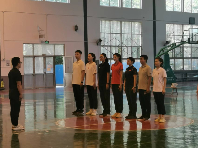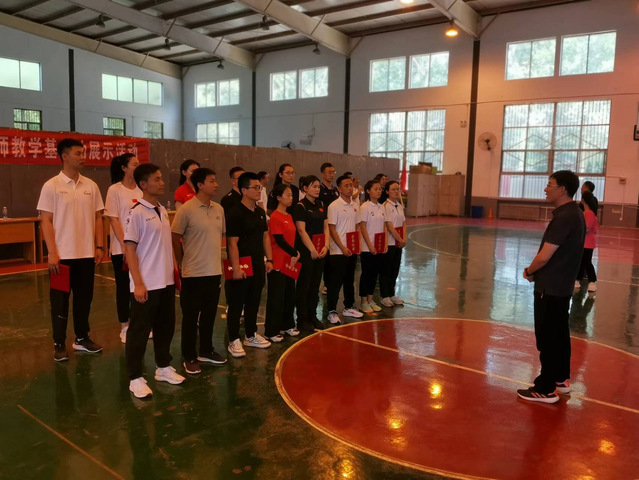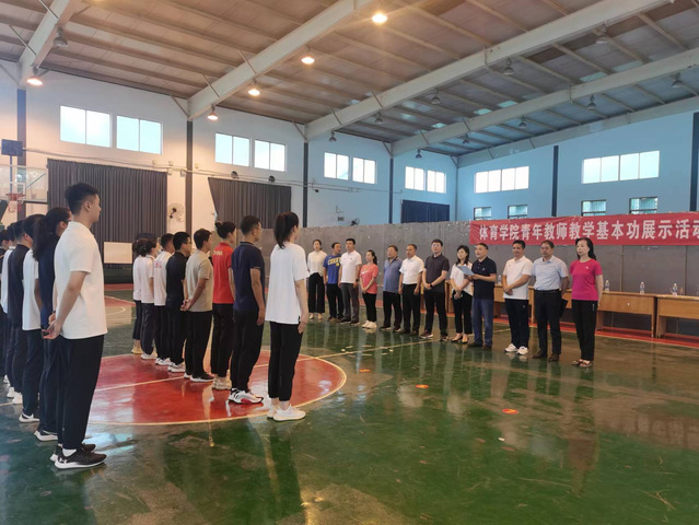 接着,青年教师按照抽签顺序依次进行队列队形和自编操教学展示。