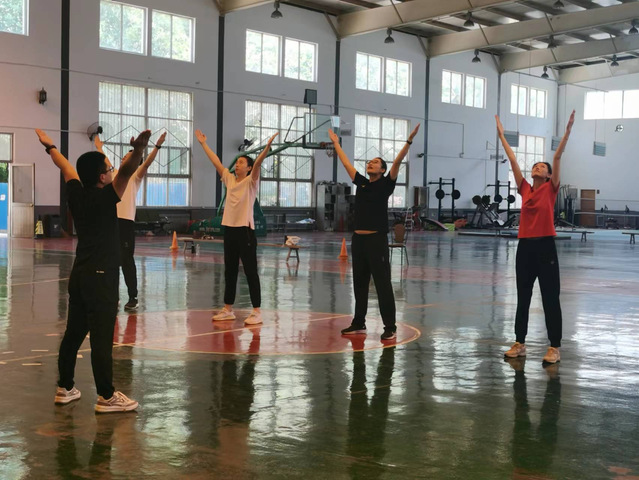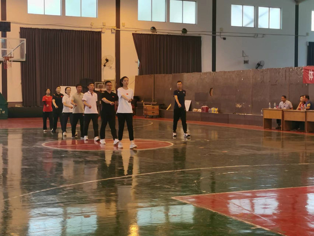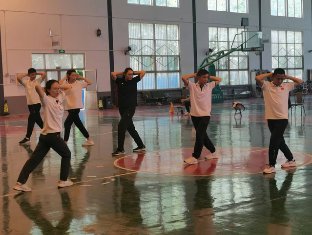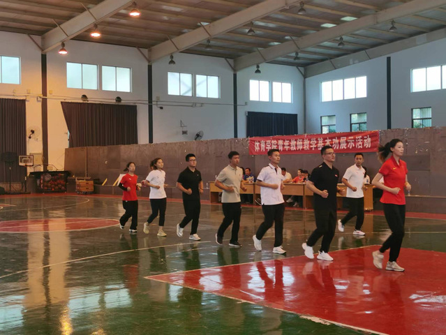接着,青年教师按照抽签顺序依次进行队列队形和自编操教学展示。