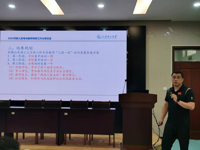 张海斌、胡鹏、王晓舟、郭涛等四位导师依次分享了对新教师培养的规划、做法和效果。