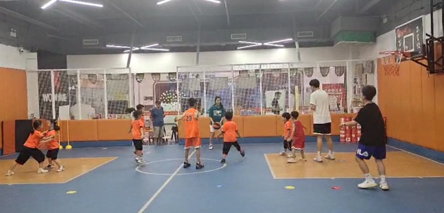 实践团志愿者们由教练员带领参与,进行了一系列不同年龄段学生的篮球体能、专项运球练习、团结协作体能游戏等培训。