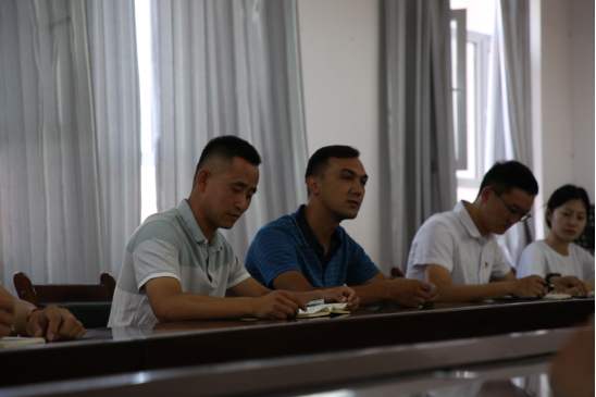 7月30日上午,喀什市市委组织部办公室张辉,莅临英吉沙实验中学开展交流、指导工作,并召开座谈会议。会议在A2栋会议室举行,实践团队带队教师朱银飞主持,英吉沙实验中学校长阿布都许库尔福、教导主任米日古丽及团队成员参加座谈。
