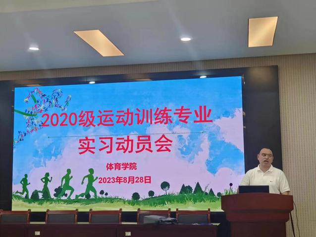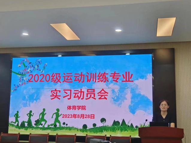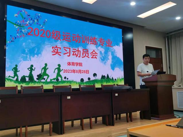 8月28日,学院在2号楼101报告厅召开2020级运动训练专业实习动员会,会议由副院长杨刚主持,学院党委副书记曹绪亮,运动训练系主任高博,教学工作办公室主任韩军梅,实习指导教师以及2020级运动训练专业学生参加动员会。