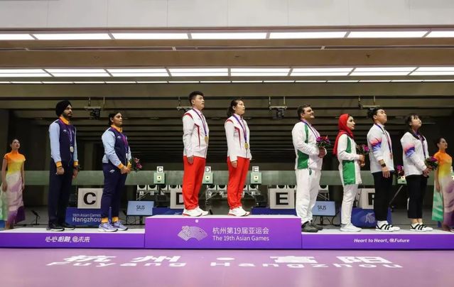 第十四届中华人民共和国全国运动会射击10米气手枪混团第一名,个人第二名,团体第三名