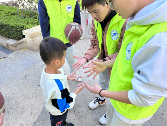 志愿者们利用本专业知识,为社区的孩子们讲解学习了“双手交换运球”、“低运球”等简单的篮球技术动作,锻炼了他们的协调能力和灵活性。在教学结束后,志愿者们采取“一对一”的方式对孩子们进行指导,进一步丰富了他们的课余生活,营造了健康、文明的社区氛围。