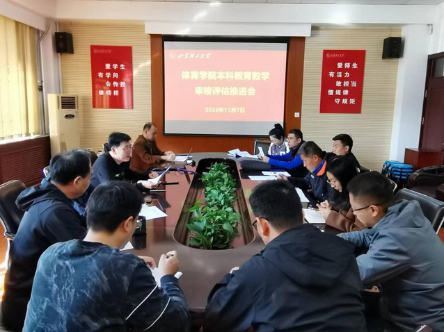 11月7日,学院于2-111会议室召开本科教育教学审核评估推进会。会议由学院党委书记、院长韩长江主持,学院领导班子、各科室主任、系部主任、辅导员参加会议。