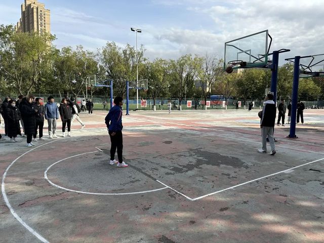 在活动中宿舍内成员团结合作,积极参与比赛,同学们共同合作,分别进行三分线外每人连续进行5次投篮,投篮点为定点(两侧0°角、两侧45°角与弧顶90°)自选其中一个点进行投篮和每人进行两次罚球线投篮,最后相加统计得分进行排名。