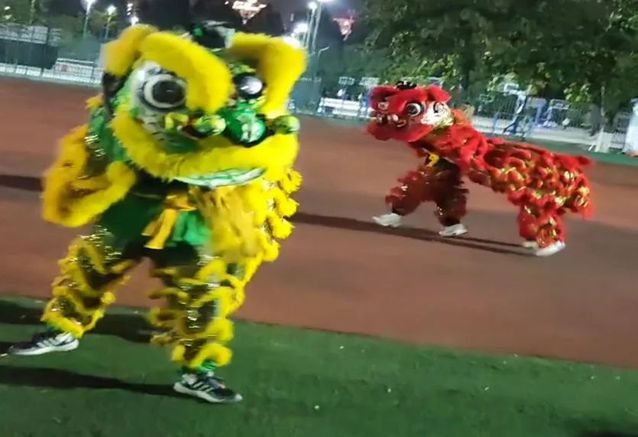 在表演中,两只雄健的狮子随着鼓声的节奏跳跃、翻滚、摇摆,展现出独特的舞狮技巧。他们舞动狮头和狮尾,模拟出狮子的各种动态,如狮子直立、狮子跳跃、狮子旋转等。看呐,他们时而高跃,时而灵动俏皮,五彩的狮身,喜庆的氛围,让现场的观众喜笑颜开,欢呼声不断,整个表演充满了喜庆和欢乐的气氛。