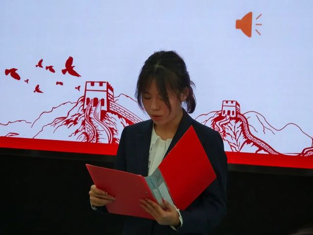 会议进行第四项,新团员代表周颂上台发言。他表示作为共产主义青年团的新成员,要有远大的理想和抱负,勇于承担责任,在团组织的大家庭中相互学习、共同进步,为国家和社会的发展贡献自己的青春力量。