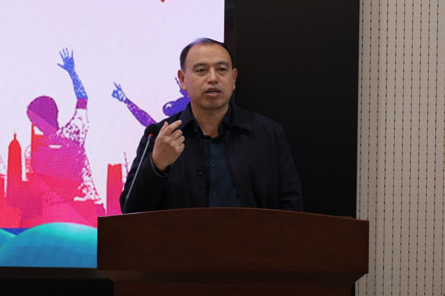 王丹介绍此次大赛规程,她希望同学们以饱满的热情迎接此次比赛,展现出自己的实力与风采,取得优异的成绩,并预祝此次基本功大赛圆满成功。