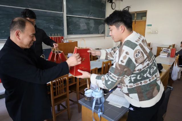 纵有千古,横有八荒,前途似海,来日方长。为鼓舞我院学子考研士气,缓解考研压力。学院党委书记、院长韩长江,党委副书记曹绪亮以及2020级辅导员索罗丹,于12月6日前往1号教学楼考研教室慰问考研学子并送上祝福礼物,为同学们加油打气!