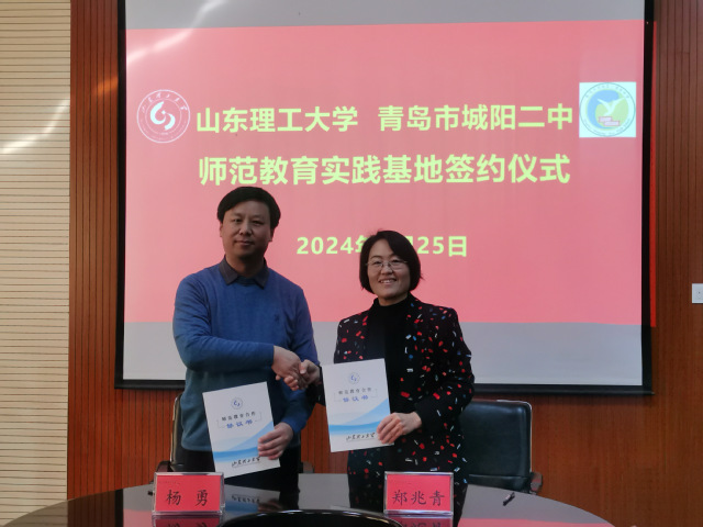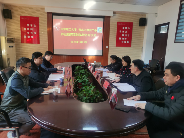 1月25日,我校与青岛市城阳第二高级中学师范教育实习实践基地合作签约仪式在williamhill威廉希尔2-111会议室隆重举行。青岛市城阳第二高级中学副校长杨勇、教务处主任王公阳、总务处主任王坤,我校教师教育学院院长郑兆青,williamhill威廉希尔党委书记、院长韩长江,副院长杨刚,教学工作办公室主任韩军梅,体育教育系主任胡鹏参加签约仪式。仪式由韩长江主持。