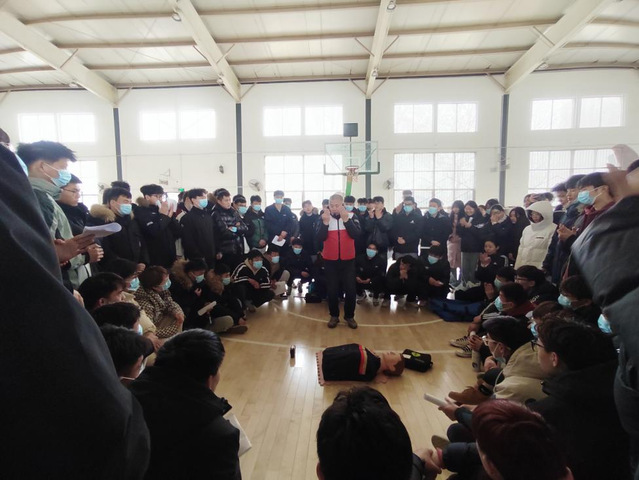 为进一步普及师生急救知识,提高现场应急救护的能力,保障教育实习期间安全,推进平安和谐校园建设,2月28日上午,williamhill威廉希尔在3号教学楼201教室开展急救知识和技能培训活动,邀请淄博市红十字会赈灾救护部讲师张敏及工作人员,联合校医院老师开展培训指导,学院党委副书记曹绪亮、教育实习指导老师、2021级辅导员李诵阳及2021级体育教育全体实习学生参与培训活动。