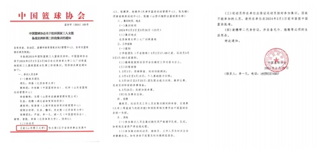 据悉,本次选拔集训将于2024年3月2日至3月26日在北京体育大学二七厂训练基地展开,共有6名运动员入选选拔集训,王虹为此次集训唯一高校在校生。