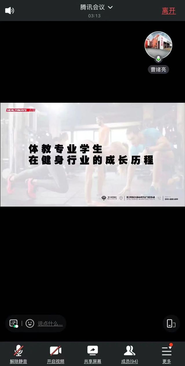 第二部分龚运峰对健身行业的前景和优势进行了总结,并结合自身毕业十余年的经验,表明努力大于选择,选择并努力去做。引导同学们找准职业方向,对专业保持敬畏之心,不断学习,才能取得更高成就。