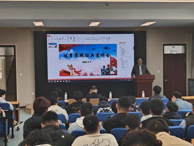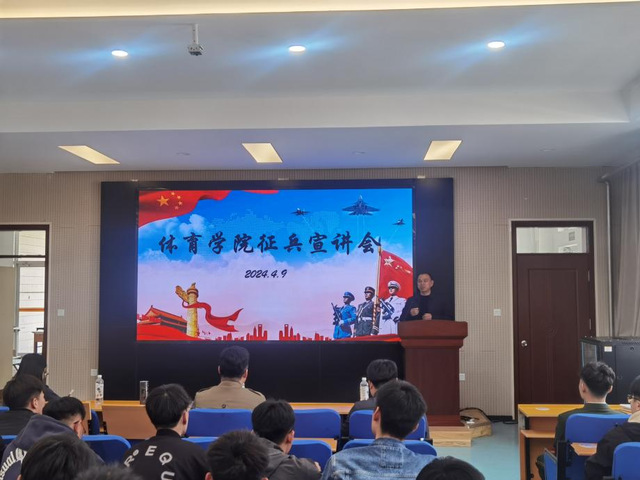 为深入贯彻习近平总书记强军思想,进一步做好2024年秋季高校征兵工作,2024年4月9日下午,williamhill威廉希尔在2号教学楼101教室召开征兵宣讲会,学生工作部管理科科长韩智利老师,武装部杨瑞老师,williamhill威廉希尔党委副书记曹绪亮老师和毕业班辅导员索罗丹老师出席本次宣讲会。