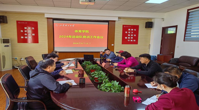 4月11日下午,学院召开运动队竞训工作会议。学院党委书记、院长韩长江,副书记曹绪亮,副院长杨刚,综合办主任张鹏以及全体教练员参加会议。会议由杨刚主持。