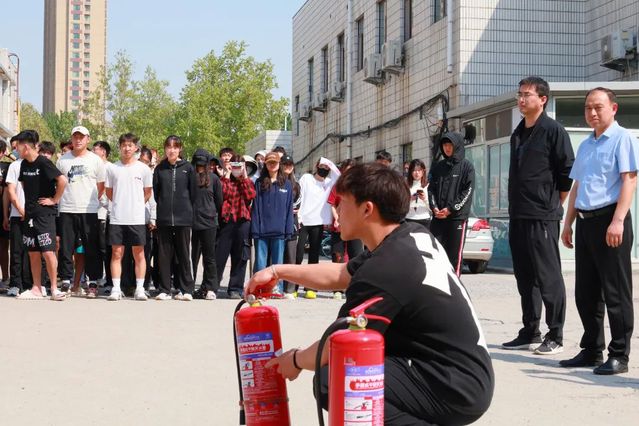 随后,运动2201班刘子琰为大家讲解干粉式灭火器的组成、功能、使用方法以及注意事项,并手把手指导学生正确使用灭火器,让全体师生“沉浸式”体验灭火,系统学习了科学的灭火技能。