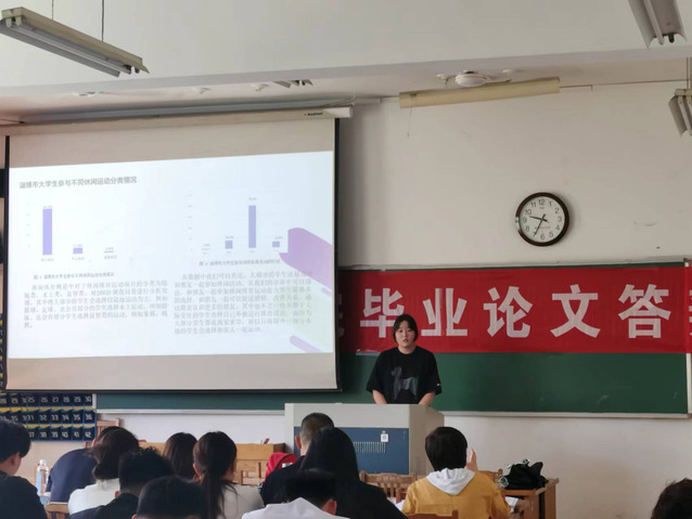 毕业论文答辩会包括论文陈述、评委老师提问、学生答辩三个环节。答辩会伊始,答辩组长宣布答辩流程、要求和注意事项。接着,同学们通过PPT展示的形式依次汇报论文选题的目的意义、研究对象与研究方法、结果与分析、结论与建议、创新点等内容。答辩评委认真听取汇报后,从论文选题、研究方法、数据分析、研究框架、写作内容、撰写规范等方面对每位同学的论文进行细致中肯的点评,并有针对性、启发式的进行提问。同学们认真记录评委们的宝贵意见与建议,准确流畅地回答相关问题,并且表示将根据各位评委的意见认真修改完善论文,进一步提高论文质量。