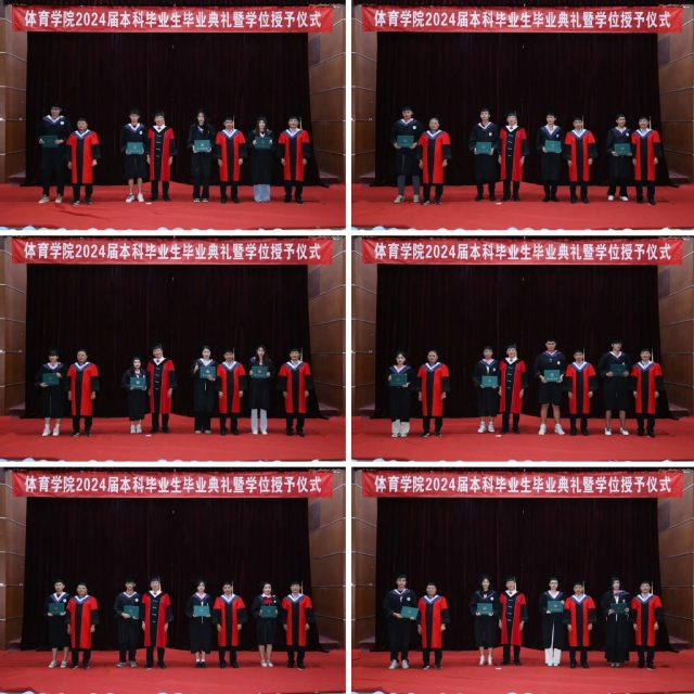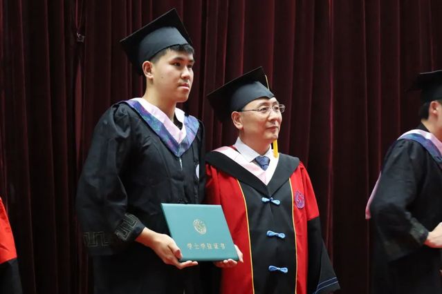 学院班子成员为毕业生授予学位证书,拨穗正冠、整理流苏。