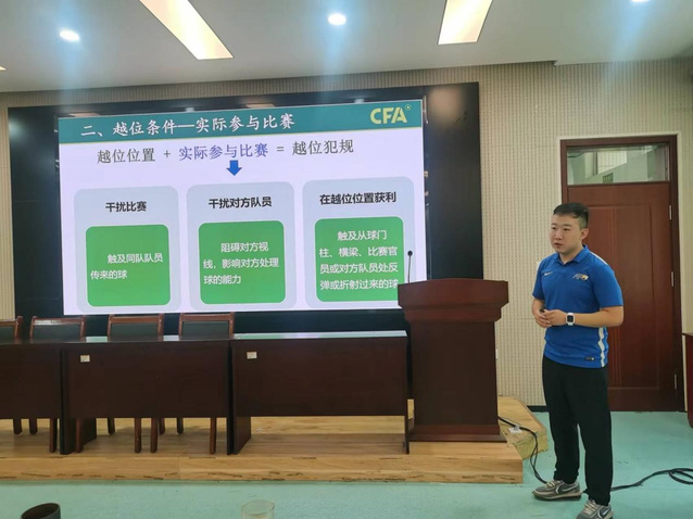 于铭浩、高绎程两位新进教师分别以足球规则—越位、篮球快攻战术配合为主题依次进行试讲。两位青年教师试讲准备充分,PPT制作简洁优美、图文并茂,教学过程流畅,语言表达清楚,教学效果良好。