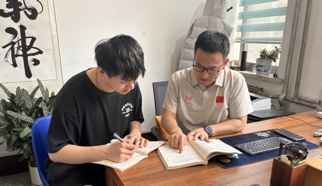 图高奎亭老师与学生一起探讨问题