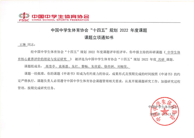图高奎亭老师指导学生课题立项通知书