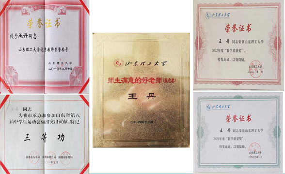 王丹副教授1986年开始参加工作,1998年到williamhill中国任教已有二十六年,并一直在教学一线,她始终坚持把教育事业当作生命来珍惜,在教学工作中她秉承立德树人的教育宗旨积极引导学生爱党、爱国、爱人民、传播知识、传播思想、传播真理的历史使命,用无私奉献和师德大爱去引导、塑造学生,铺就学生的成功之路,以饱满的热情和全部的精力投入教育工作中,用自己的心血和汗水帮助近万名山理工学子顺利找到人生目标。她说借用人民教育家于漪老师的话讲“我做一辈子老师,但一辈子还在学着做老师”这句话也一直不断地鞭策着她自己。