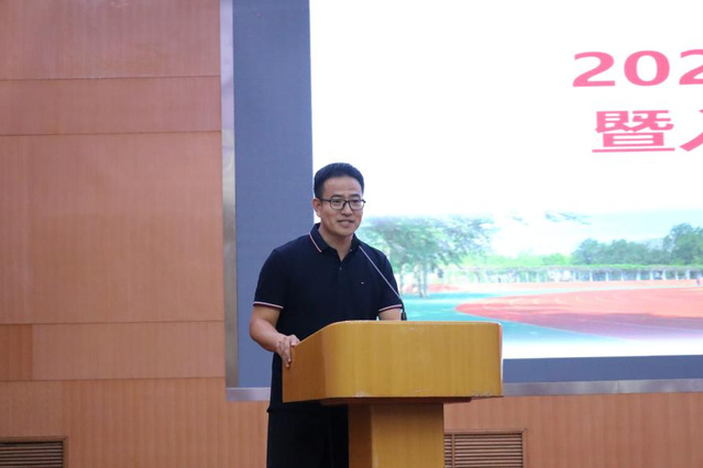 教师代表高奎亭发言,他希望同学们自觉加强专业知识学习,不断提高身体素质,积极投身于各项体育活动与社会实践,探索人生的价值和意义,为体育强国建设奏响属于山理工出彩体育人的激昂乐章!