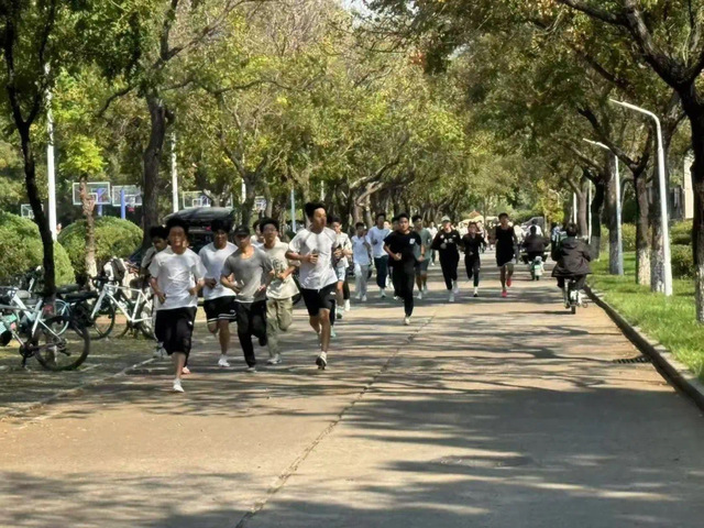 在进行赛前集体合照后,健跑活动正式开始,随着发令枪响起,全体参赛人员按照活动规划路线围绕第二体育场、逸夫图书馆、第四体育场等场地完成此次校园跑,整体路线呈现数字“75”形状,以此庆祝新中国75周年华诞。