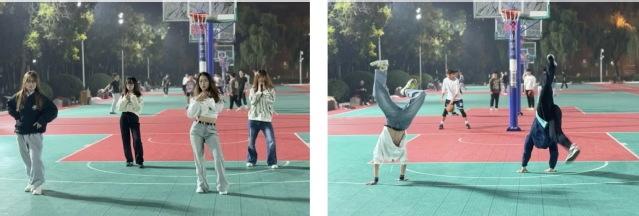 街舞表演活动伴随在篮球单挑争霸赛的始终,街舞表演赢得的掌声与篮球灌篮引起的欢呼声相辅相成,瞬间点燃全场热情的气氛。此次表演的经历,不仅提高了自己的街舞水平,还培养了团队合作和社交能力。