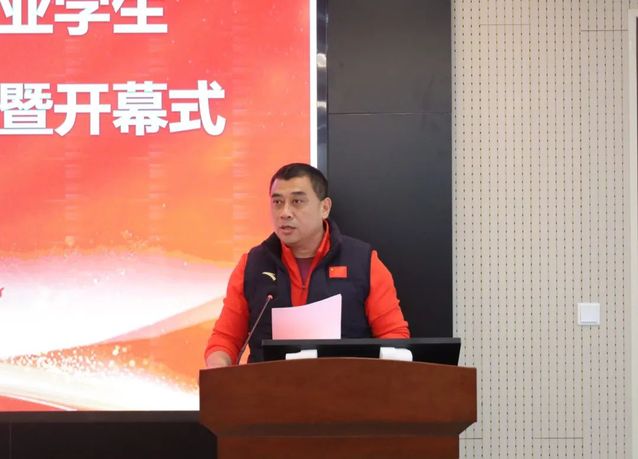 指导教师代表阚世超发言表示,此次大赛对于提升体育教育专业学生培养质量和对未来岗位发展有着特殊的意义,希望同学们顽强拼搏,争创一流,争做出彩体育人。