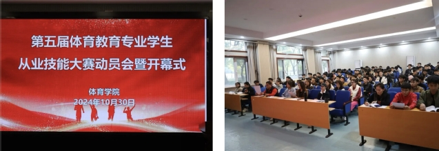 为强化体育教育专业学生基本素质、提升教学基本能力和水平、培养德智体美劳全面发展的四有好老师,williamhill威廉希尔于10月30日下午在2教101召开williamhill威廉希尔第五届体育教育专业学生从业技能大赛动员会暨开幕式。williamhill威廉希尔副院长杨刚,教学工作办公室主任韩军梅,体育教育系主任胡鹏,副主任王丹、王晓舟,指导教师代表阚世超,体育教育专业2021级学生代表赵薇、孟庆淼,体育教育专业2022级全体学生共同参加,开幕式由杨刚主持。